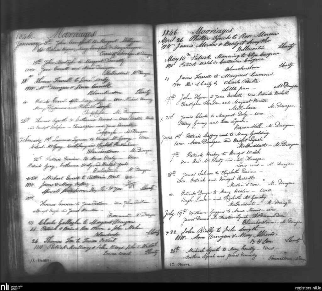 Blanchardstown; County of Dublin; Archdiocese of Dublin. Marriages, Jan. 1846 to July 1846