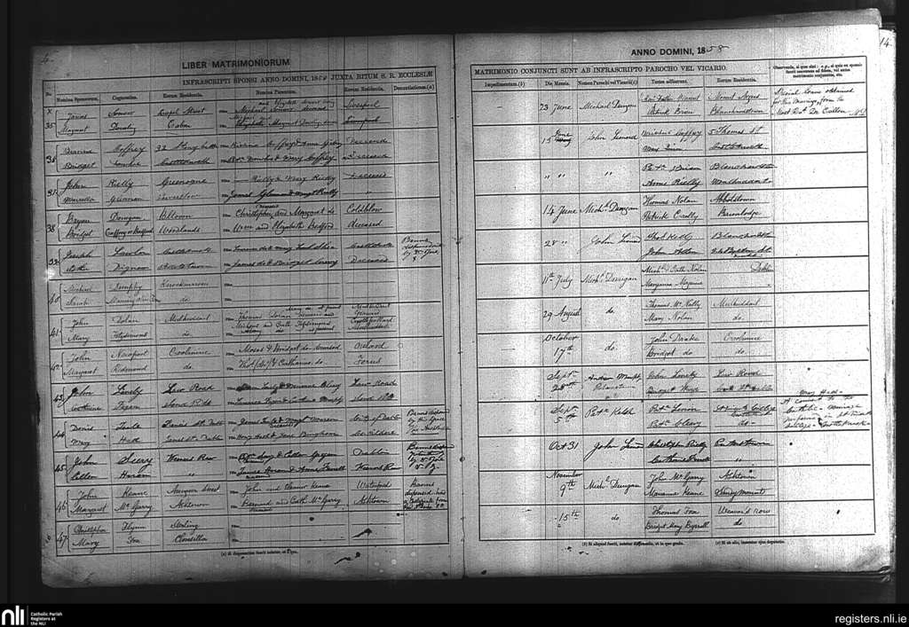 Blanchardstown; County of Dublin; Archdiocese of Dublin. Marriages, June 1858 to Nov. 1858