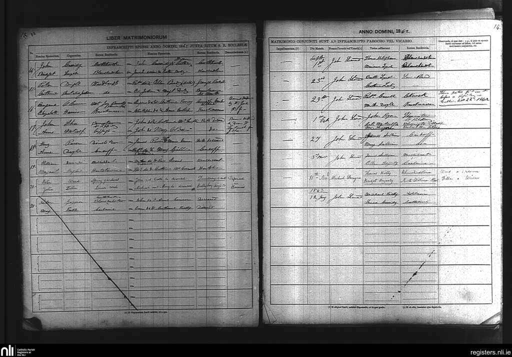 Blanchardstown; County of Dublin; Archdiocese of Dublin. Marriages, Sep. 1862 to Jan. 1863