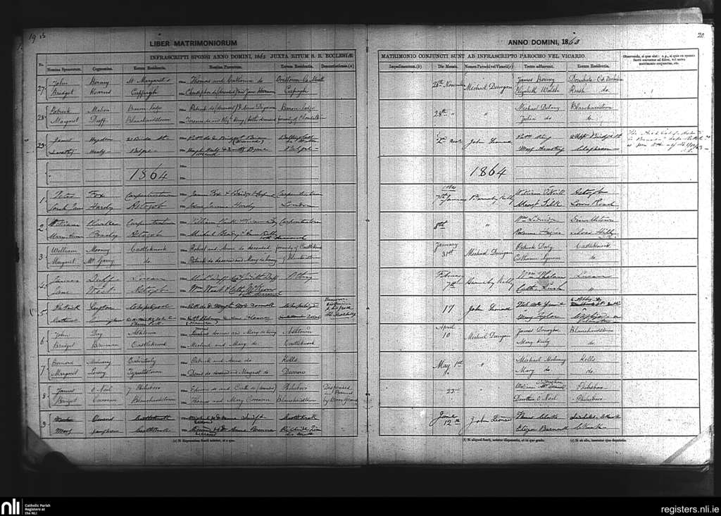 Blanchardstown; County of Dublin; Archdiocese of Dublin. Marriages, Nov. 1863 to June 1864