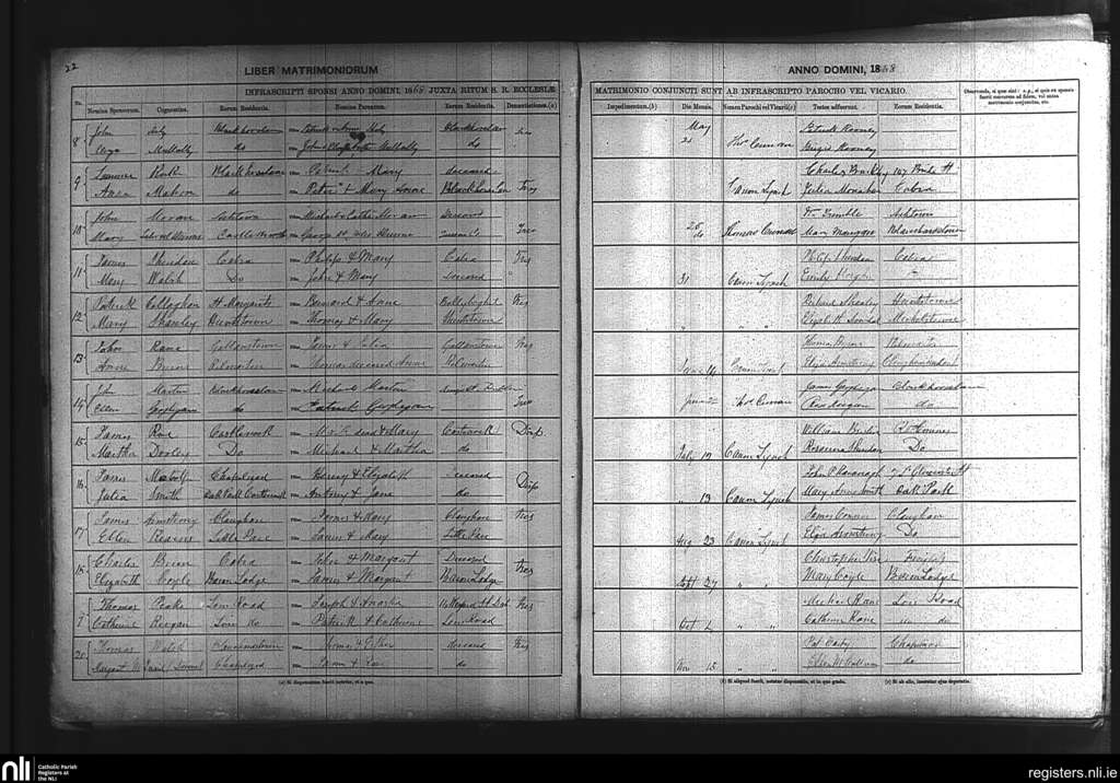Blanchardstown; County of Dublin; Archdiocese of Dublin. Marriages, May 1868 to Nov. 1868