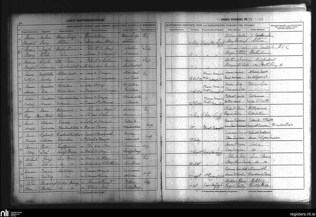Blanchardstown; County of Dublin; Archdiocese of Dublin. Marriages, Oct. 1872 to Oct. 1873
