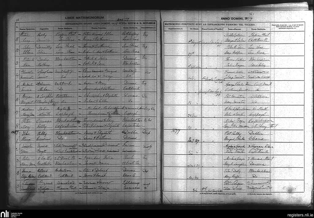 Blanchardstown; County of Dublin; Archdiocese of Dublin. Marriages, Aug. 1876 to May 1877