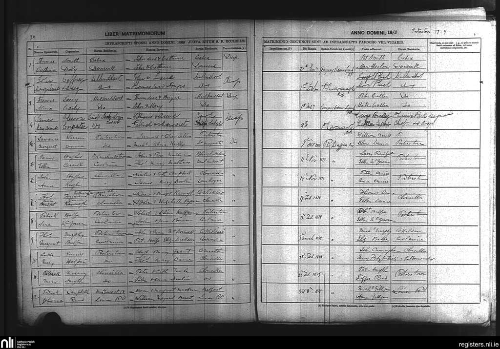 Blanchardstown; County of Dublin; Archdiocese of Dublin. Marriages, Oct. 1877 to Feb. 1880