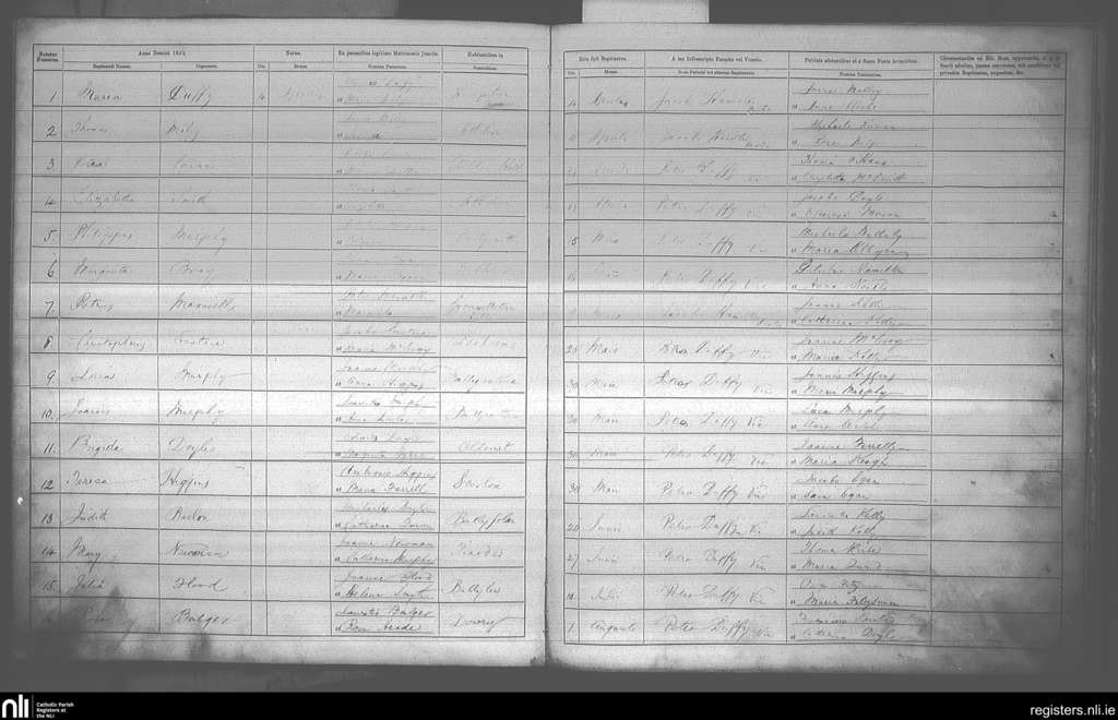 Blessington; County of Kildare, Wicklow; Archdiocese of Dublin. Baptisms, Apr. 1852 to Aug. 1852
