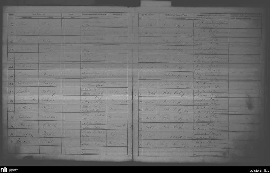 Blessington; County of Kildare, Wicklow; Archdiocese of Dublin. Baptisms, Aug. 1852 to Dec. 1852