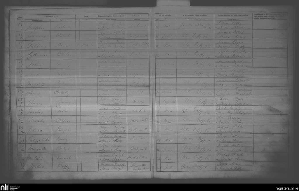 Blessington; County of Kildare, Wicklow; Archdiocese of Dublin. Baptisms, Jan. 1854 to June 1854