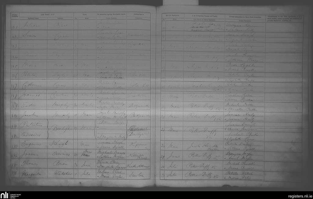 Blessington; County of Kildare, Wicklow; Archdiocese of Dublin. Baptisms, Jan. 1858 to July 1858