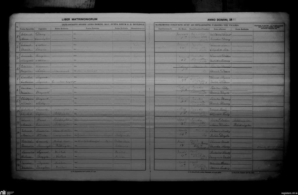 Blessington; County of Kildare, Wicklow; Archdiocese of Dublin. Marriages, Jan. 1853 to June 1853
