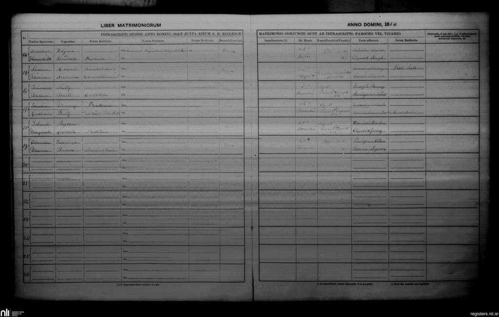 Blessington; County of Kildare, Wicklow; Archdiocese of Dublin. Marriages, July 1858 to Nov. 1858