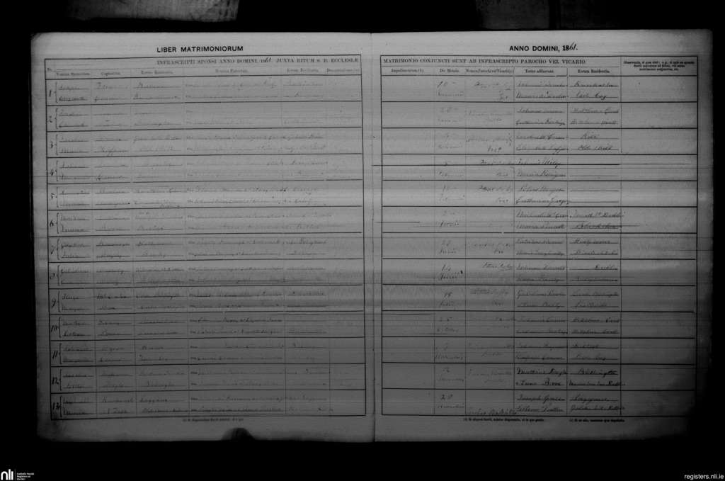 Blessington; County of Kildare, Wicklow; Archdiocese of Dublin. Marriages, Jan. 1861 to Nov. 1861