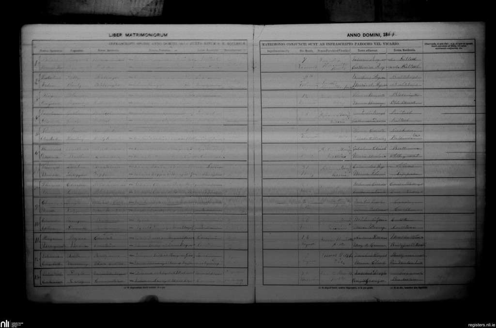 Blessington; County of Kildare, Wicklow; Archdiocese of Dublin. Marriages, Jan. 1864 to Nov. 1864