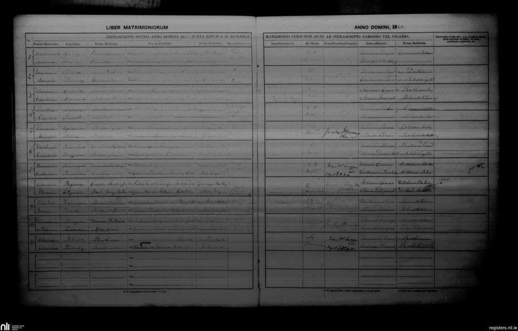 Blessington; County of Kildare, Wicklow; Archdiocese of Dublin. Marriages, Jan. 1868 to Nov. 1868