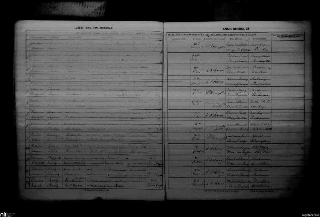 Blessington; County of Kildare, Wicklow; Archdiocese of Dublin. Marriages, Jan. 1870 to Nov. 1870