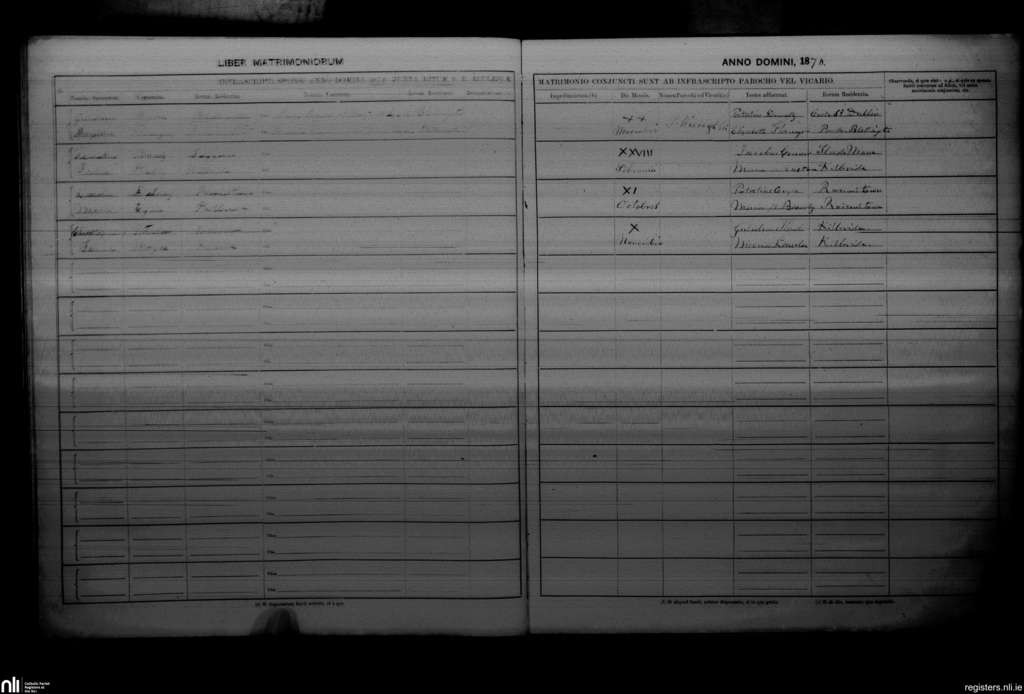 Blessington; County of Kildare, Wicklow; Archdiocese of Dublin. Marriages, Feb. 1870 to Nov. 1870