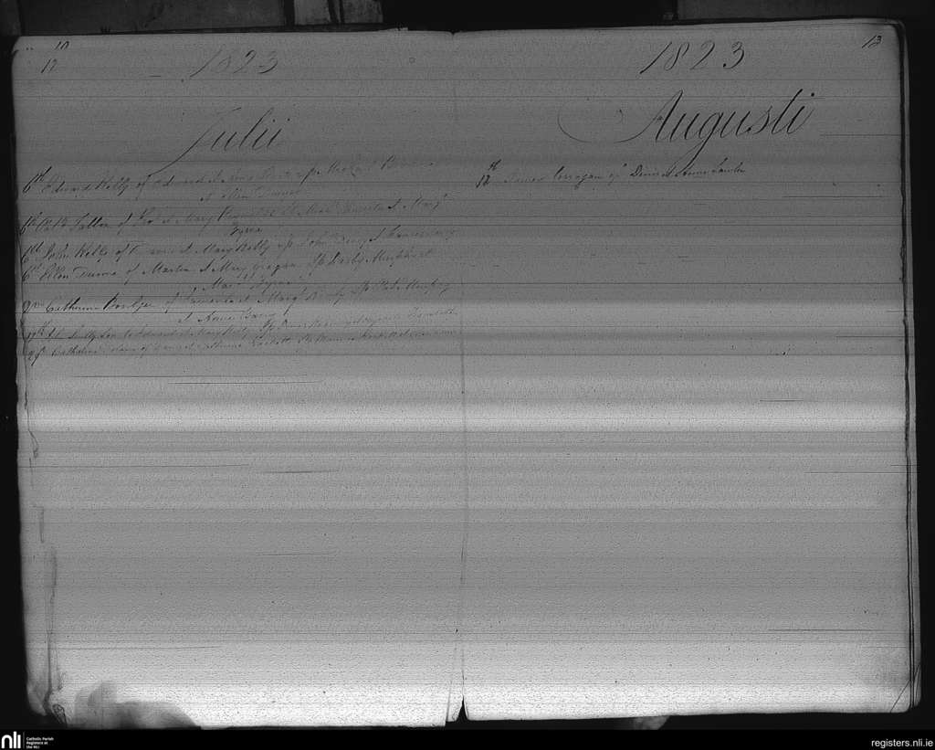 Castledermot; County of Kildare; Archdiocese of Dublin. Baptisms, July 1823 to Aug. 1823