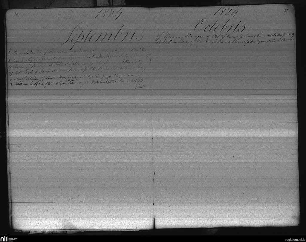 Castledermot; County of Kildare; Archdiocese of Dublin. Baptisms, Sep. 1824 to Oct. 1824