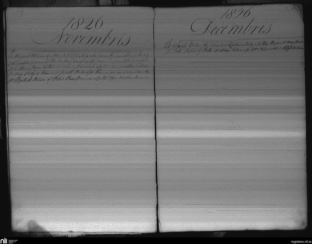 Castledermot; County of Kildare; Archdiocese of Dublin. Baptisms, Nov. 1826 to Dec. 1826