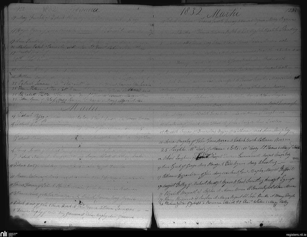 Castledermot; County of Kildare; Archdiocese of Dublin. Baptisms, Feb. 1832 to Mar. 1832
