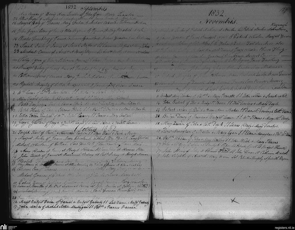 Castledermot; County of Kildare; Archdiocese of Dublin. Baptisms, Sep. 1832 to Nov. 1832