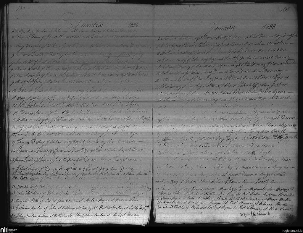 Castledermot; County of Kildare; Archdiocese of Dublin. Baptisms, Dec. 1832 to Jan. 1833