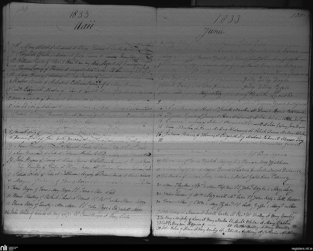 Castledermot; County of Kildare; Archdiocese of Dublin. Baptisms, May 1833 to June 1833