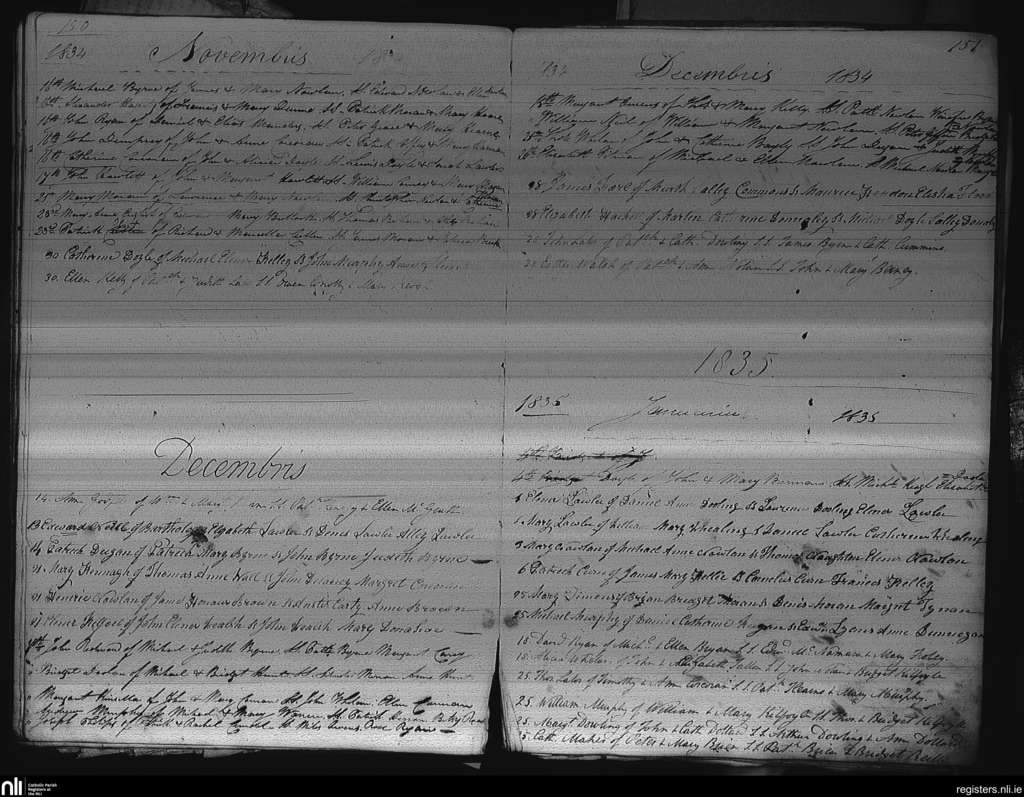 Castledermot; County of Kildare; Archdiocese of Dublin. Baptisms, Nov. 1834 to Jan. 1835