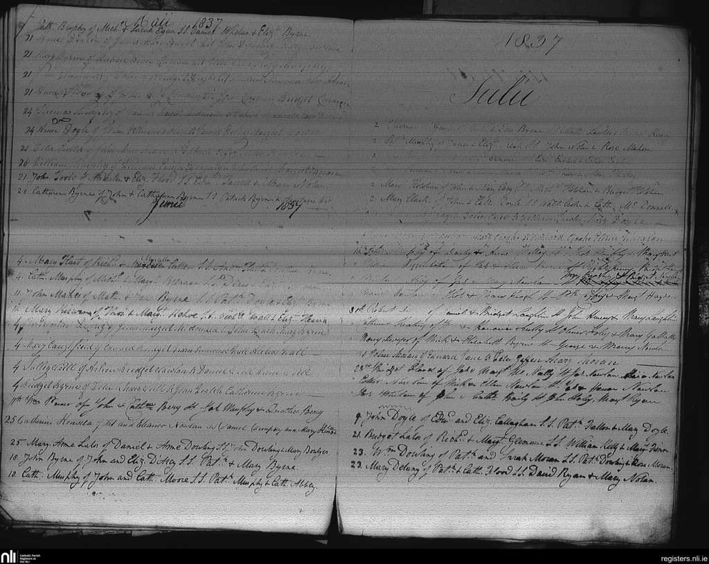 Castledermot; County of Kildare; Archdiocese of Dublin. Baptisms, May 1837 to July 1837