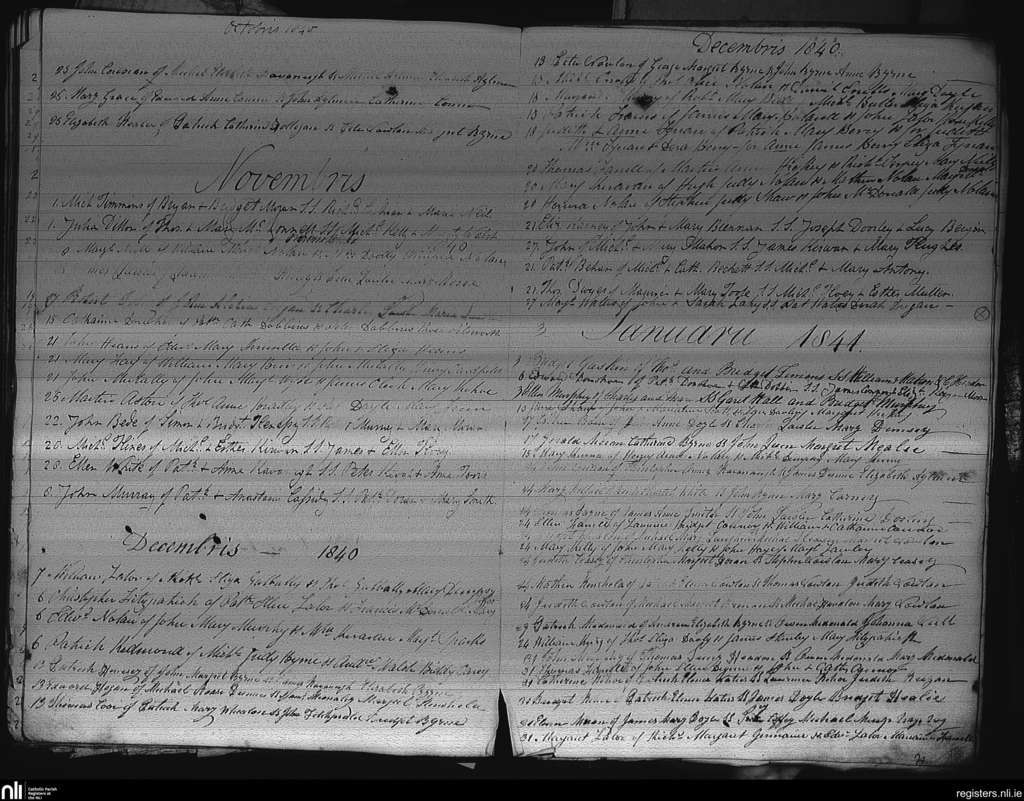Castledermot; County of Kildare; Archdiocese of Dublin. Baptisms, Oct. 1840 to Jan. 1841