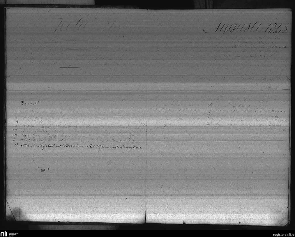 Castledermot; County of Kildare; Archdiocese of Dublin. Baptisms, July 1845 to Aug. 1845