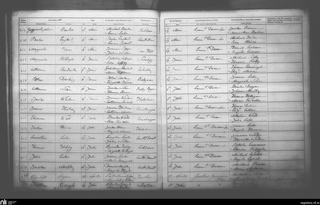 Castledermot; County of Kildare; Archdiocese of Dublin. Baptisms, Apr. 1860 to July 1860
