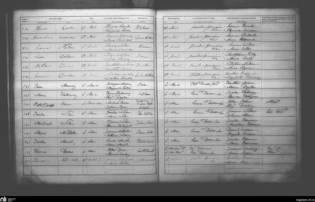 Castledermot; County of Kildare; Archdiocese of Dublin. Baptisms, Apr. 1861 to Oct. 1861