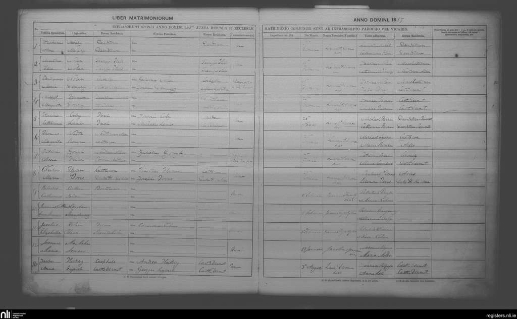 Castledermot; County of Kildare; Archdiocese of Dublin. Marriages, Jan. 1857 to Aug. 1857