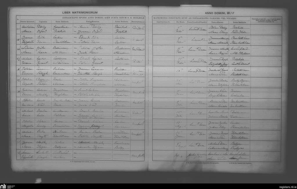 Castledermot; County of Kildare; Archdiocese of Dublin. Marriages, Feb. 1858 to Aug. 1858