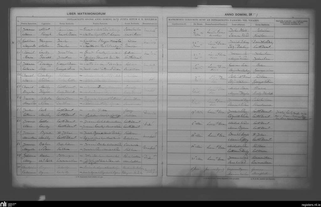 Castledermot; County of Kildare; Archdiocese of Dublin. Marriages, Feb. 1859 to June 1859