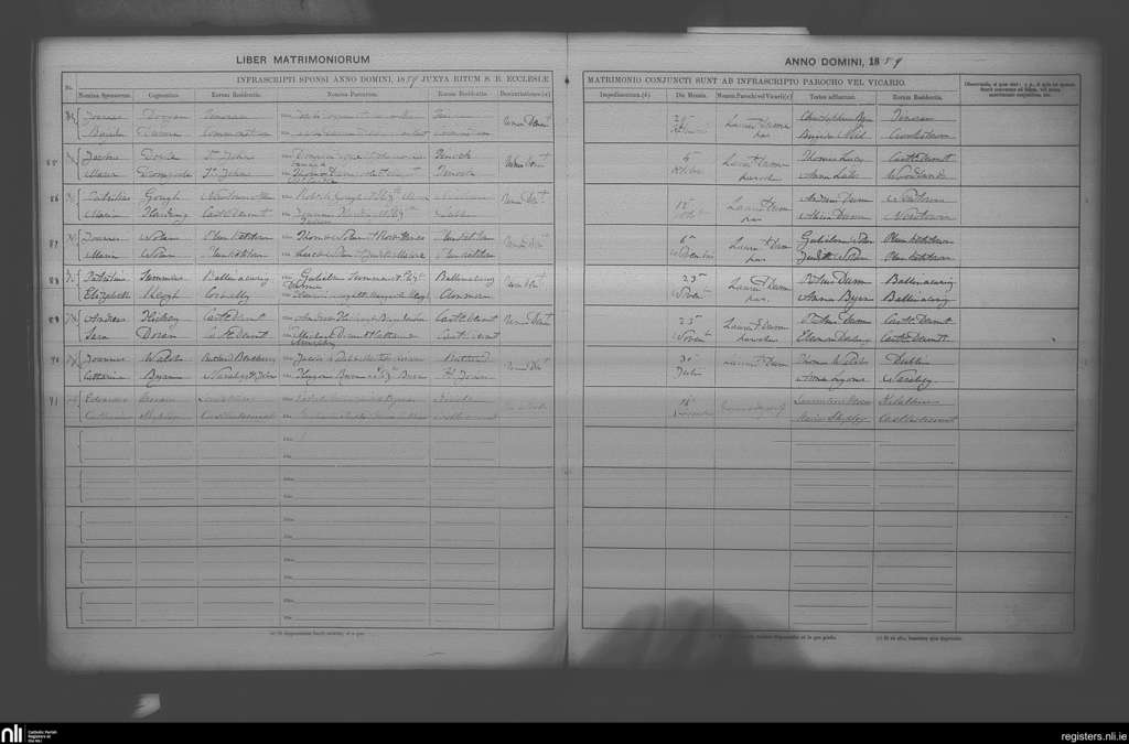 Castledermot; County of Kildare; Archdiocese of Dublin. Marriages, July 1859 to Nov. 1859