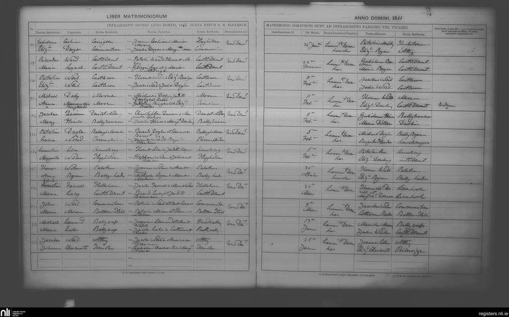 Castledermot; County of Kildare; Archdiocese of Dublin. Marriages, Jan. 1861 to June 1861