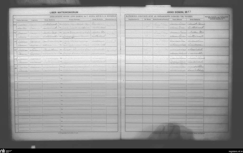 Castledermot; County of Kildare; Archdiocese of Dublin. Marriages, Nov. 1863