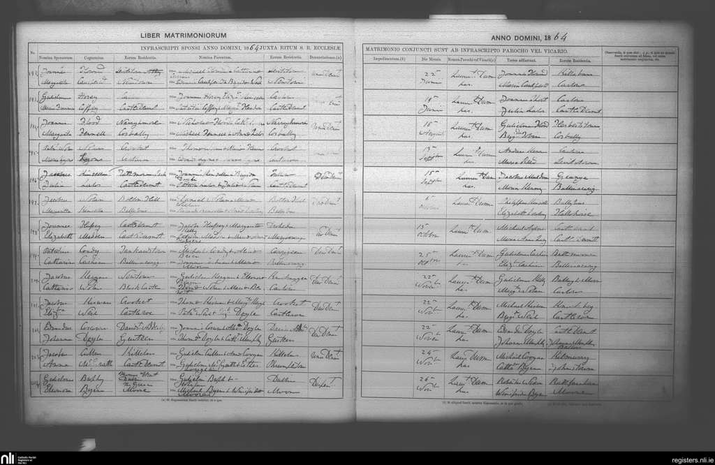 Castledermot; County of Kildare; Archdiocese of Dublin. Marriages, June 1864 to Nov. 1864