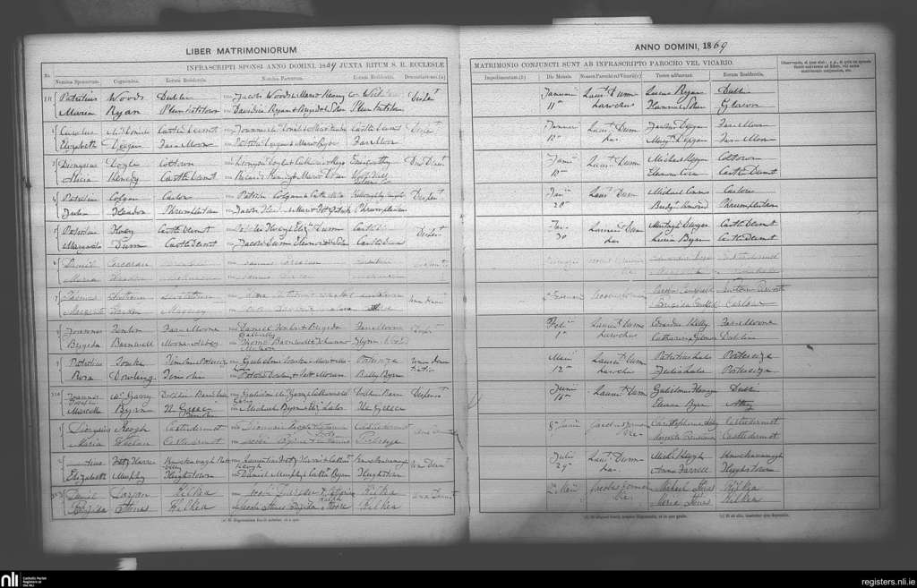 Castledermot; County of Kildare; Archdiocese of Dublin. Marriages, Jan. 1869 to July 1869