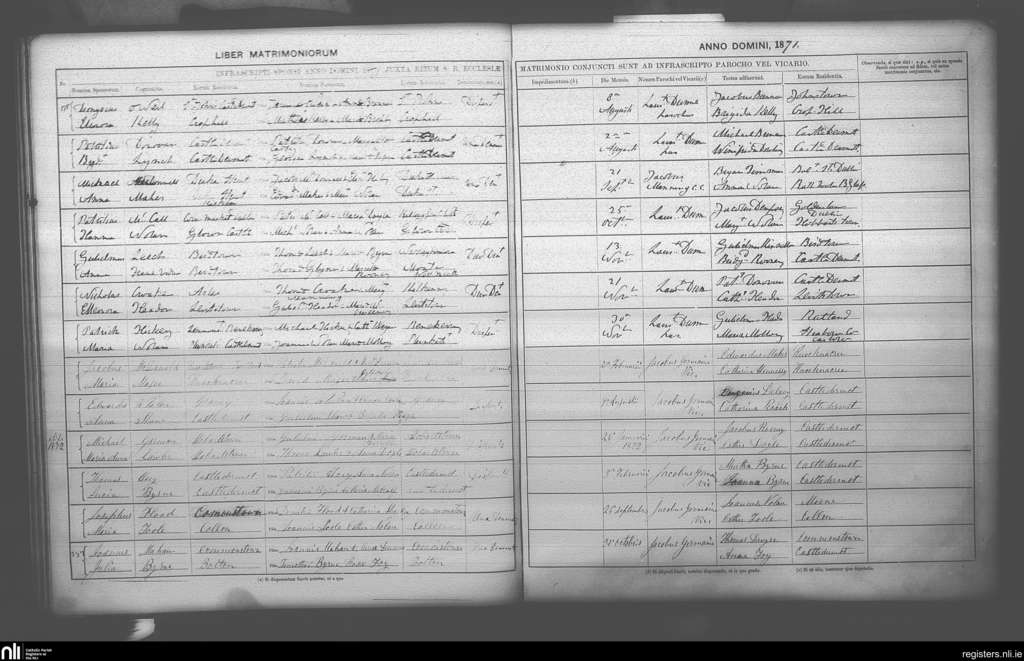 Castledermot; County of Kildare; Archdiocese of Dublin. Marriages, Jan. 1871 to Nov. 1871