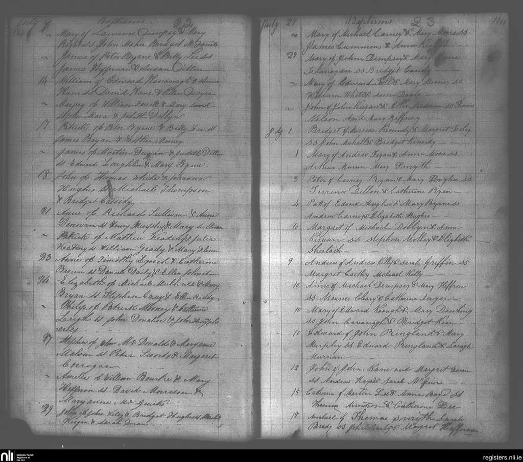 Narraghmore, Crookstown and Kilmeade; County of Kildare; Archdiocese of Dublin. Baptisms, July 1844 to Aug. 1844
