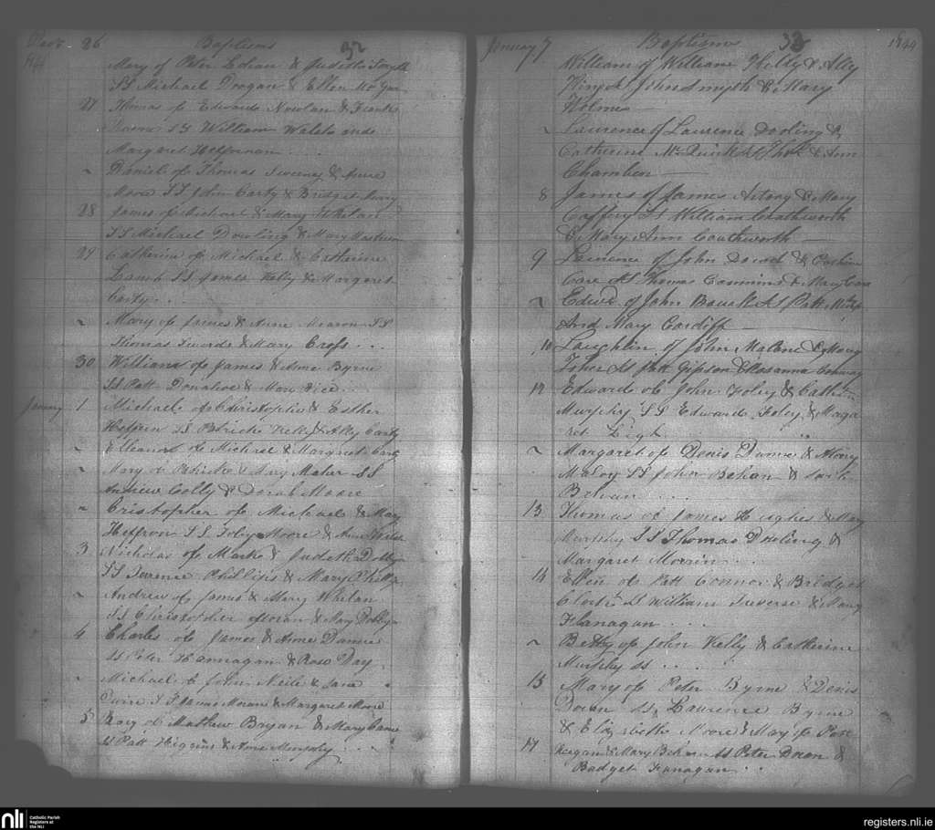 Narraghmore, Crookstown and Kilmeade; County of Kildare; Archdiocese of Dublin. Baptisms, Dec. 1844 to Jan. 1846