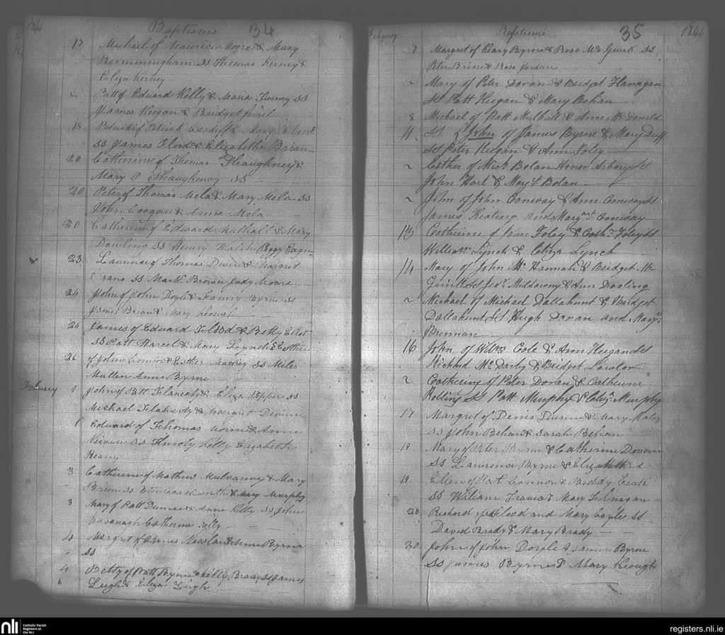 Narraghmore, Crookstown and Kilmeade; County of Kildare; Archdiocese of Dublin. Baptisms, Jan. 1846 to Feb. 1846