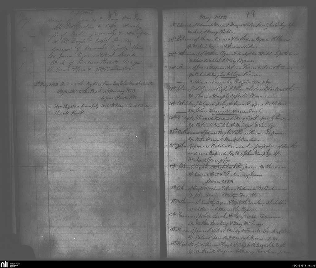 Narraghmore, Crookstown and Kilmeade; County of Kildare; Archdiocese of Dublin. Baptisms, July 1846 to June 1853