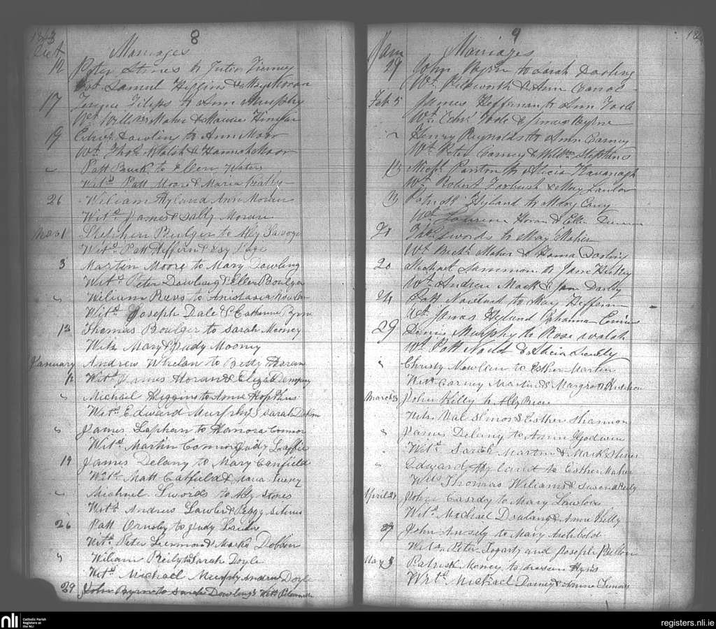 Narraghmore, Crookstown and Kilmeade; County of Kildare; Archdiocese of Dublin. Marriages, Oct. 1843 to May 1844