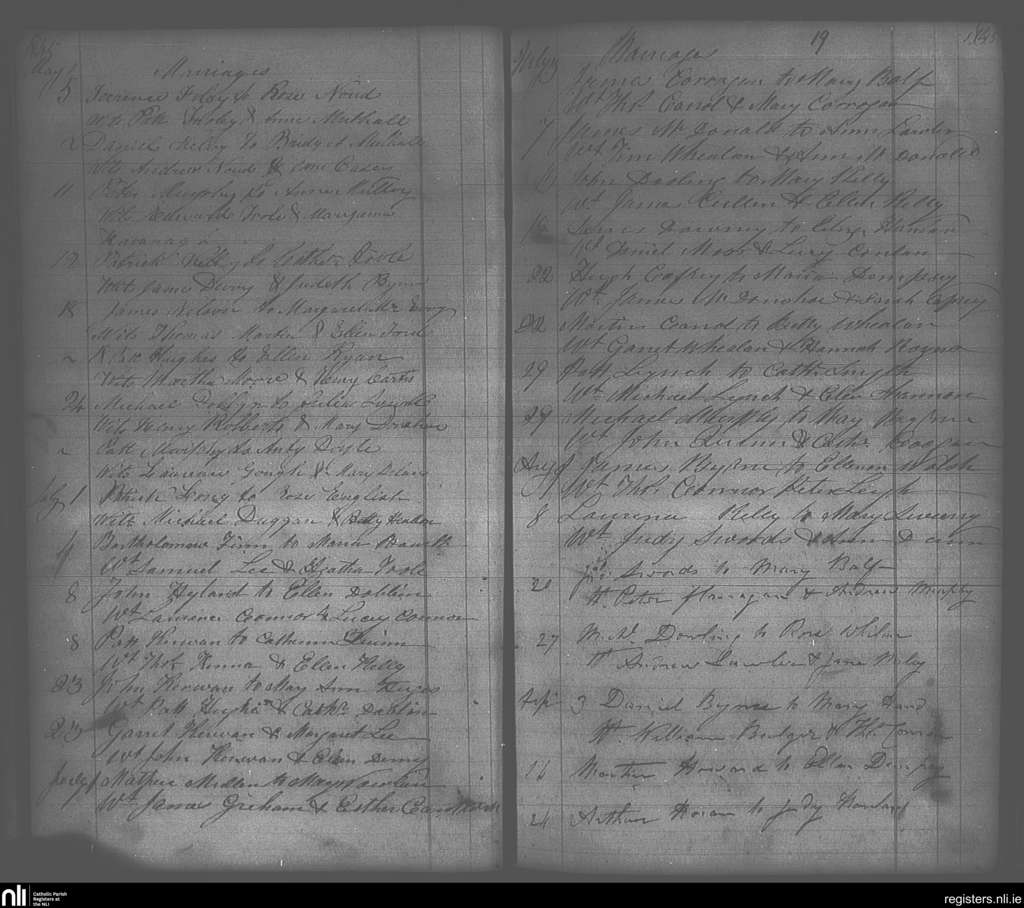 Narraghmore, Crookstown and Kilmeade; County of Kildare; Archdiocese of Dublin. Marriages, May 1845 to Sep. 1845