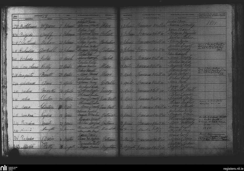 Donabate; County of Dublin; Archdiocese of Dublin. Baptisms, Feb. 1869 to Nov. 1869