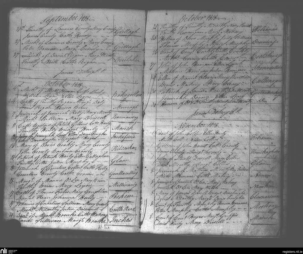 Dunmanway; County of Cork; Diocese of Cork and Ross. Baptisms, Sep. 1818 to Nov. 1818