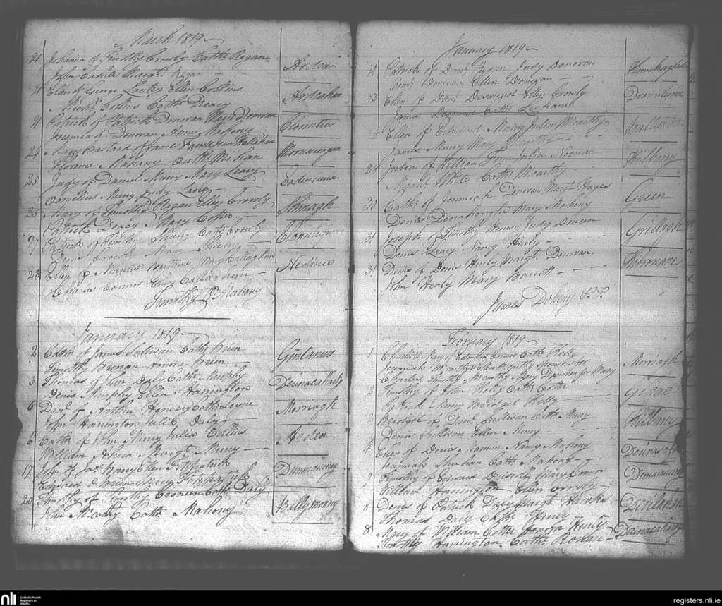 Dunmanway; County of Cork; Diocese of Cork and Ross. Baptisms, Jan. 1819 to Mar. 1819